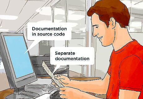 Decide how much of the documentation should be within the program code and how much should be separate from it. The more technical documentation is developed within the program's source code to begin with, the easier it will be to update and maintain along with the code, as well as to document various versions of the original application. At a minimum, documentation within the source code needs to explain the purpose of functions, subroutines, variables, and constants. If the source code is particularly lengthy, it can be documented in the form of a help file, which can be indexed or searched with keywords. This is a particular advantage for applications where the program logic is fragmented over many pages and includes a number of supplemental files, as with certain Web applications. Some programming languages, such as Java and the .NET Framework (Visual Basic.NET, C #), have their own standards for documenting code. In these cases, follow the standards as to how much of the documentation should be included with the source code.