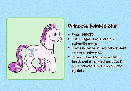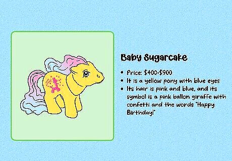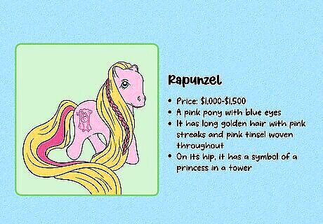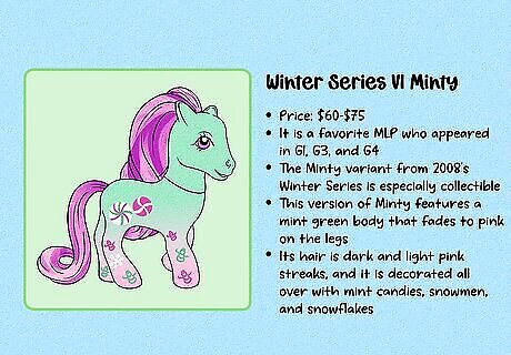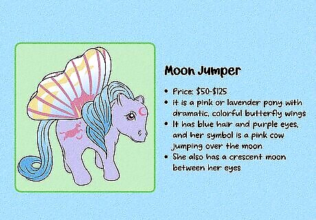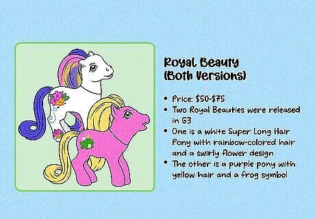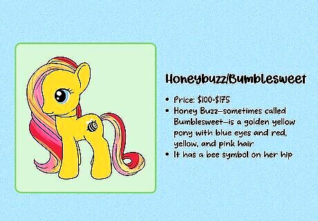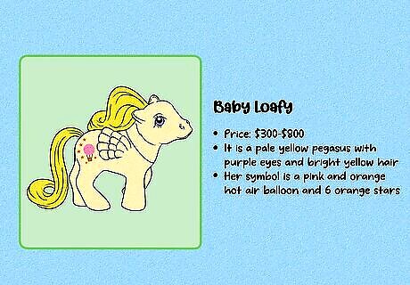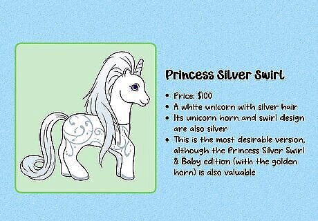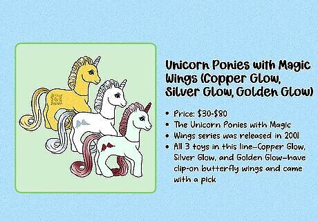 G1 is considered the most collectible generation. These figures were produced between 1983 and 1995. These toys can be hard to find, especially with all of their accessories—and they’re often highly collectible due to the nostalgia factor. G2 (1997–2003) is typically considered the least collectible generation. The design changed a lot when the new toys were released in 1997, and original fans of My Little Pony weren’t especially impressed. Note that some collectors consider toys produced after 2021 to be part of G5.