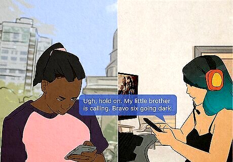 Use “Bravo Six going dark” to say you can’t talk for a while. “Going dark” is military jargon that means you can’t talk for a little while, usually because there are enemies around and you want to be sneaky. You don’t have to be on a special ops mission to say it, though. Use it (or send the gif version) when you’re locking in on some homework, clocking in to work, or just whenever you don’t want to use your phone. Example: “I’ll talk to you later. Bravo six going dark.” Example: “Ugh, hold on. My little brother is calling. Bravo six going dark.”
